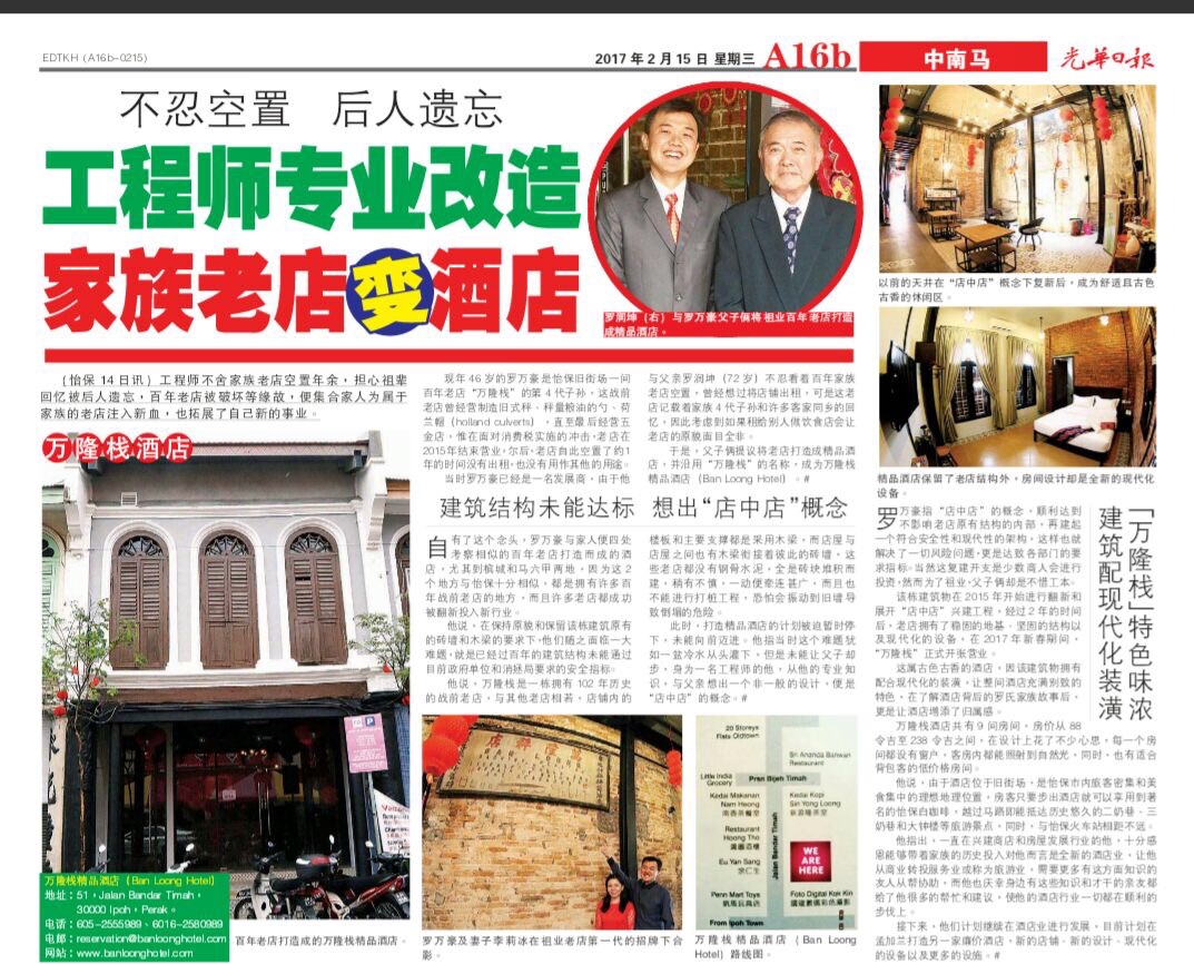 Kwong Wah Press Exclusive: 102-Year-Old Ban Loong Hotel @ Ipoh Old Town
